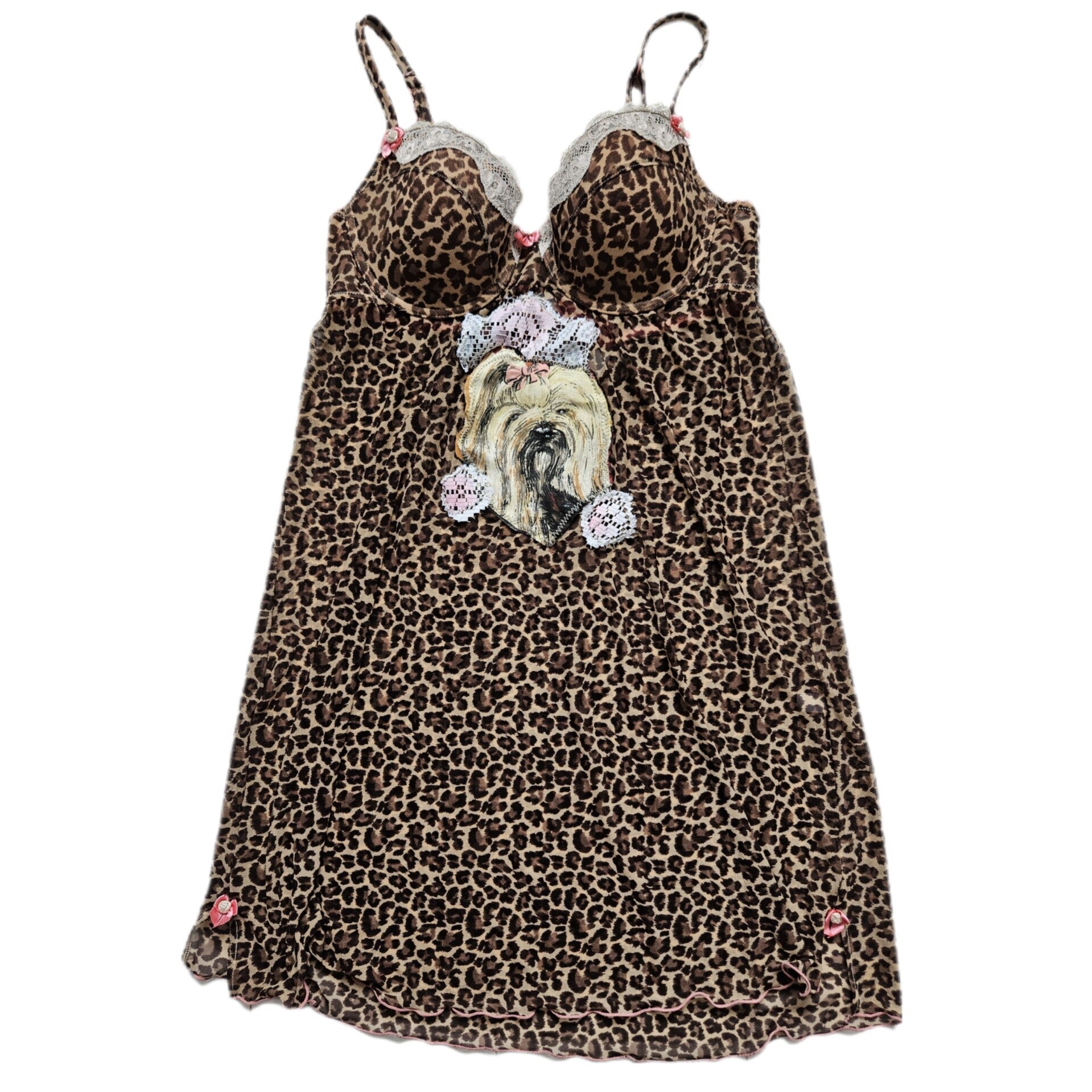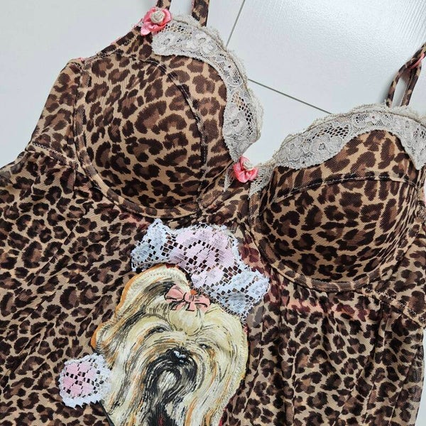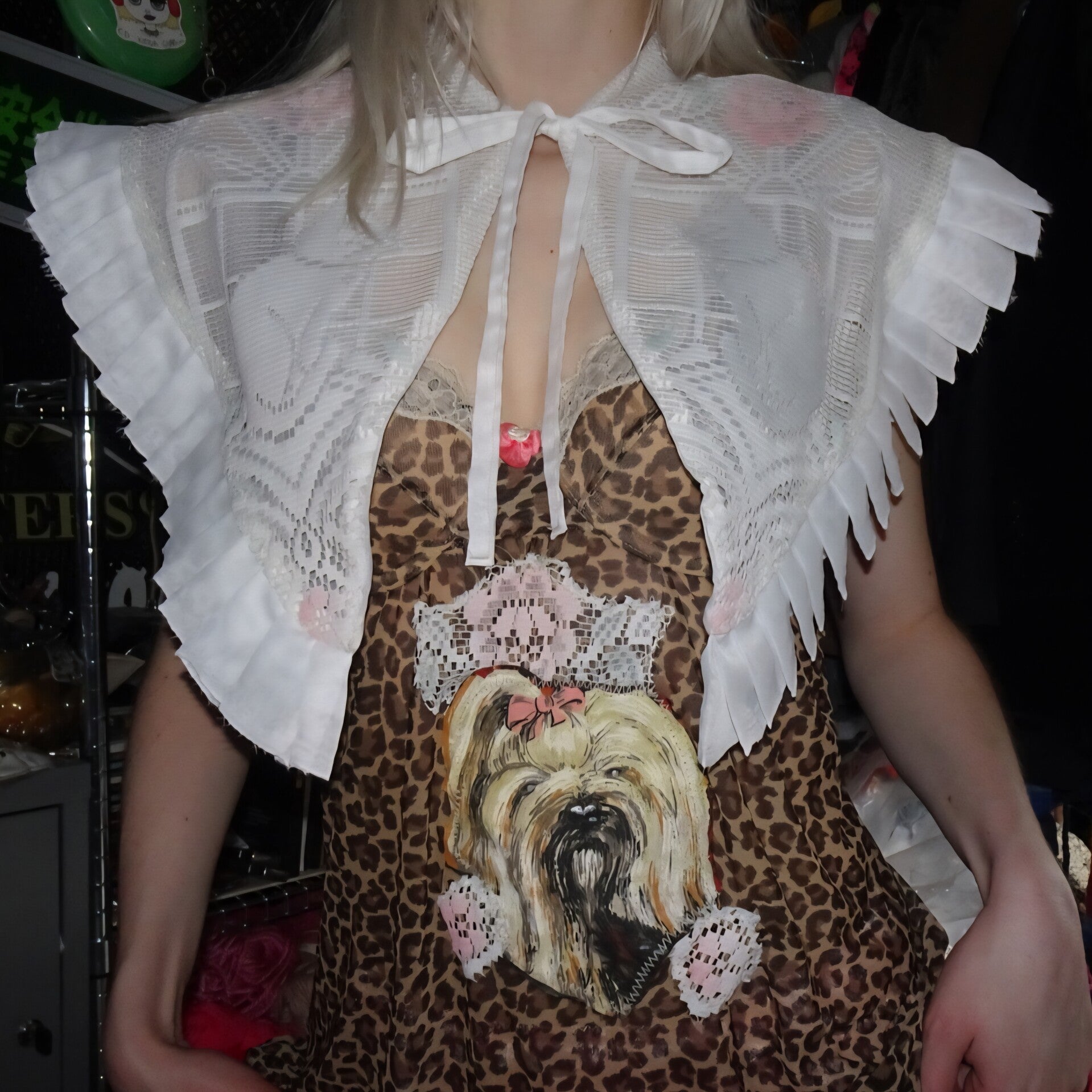 Reworked secondhand lingerie dress with added secondhand patches! This cute doggie is from the same fabric I use to make collars! So if you're looking for a cute set: Click here!